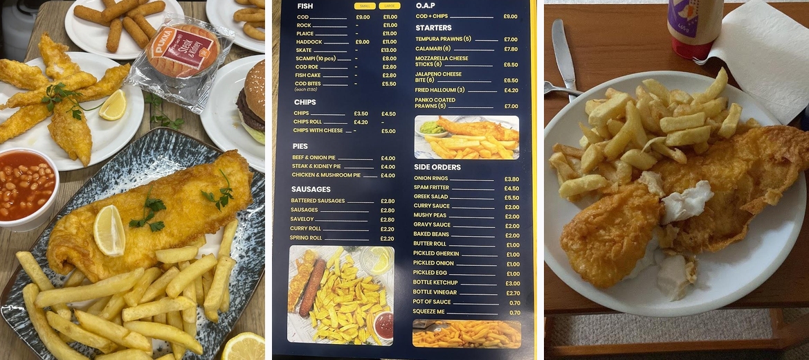 With a robust menu featuring nine types of fish, along with side dishes and meal deals, there's something for everyone—families, OAPs, and even the younger crowd can enjoy dedicated kids' meals. The casual vibe makes for a comfortable dining experience, whether enjoyed on-site or as a takeaway.
